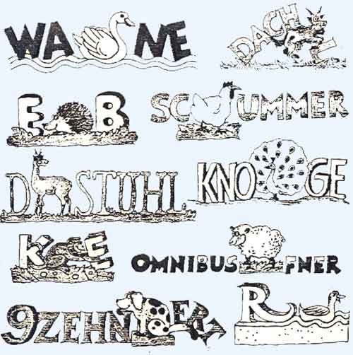 In diesen 10 Wortbildern ist immer ein Tier mit dabei. Wenn du bei jedem Wortbild auch den Tiernamen mitliest, weist du, wie das ganze Wort heisst.