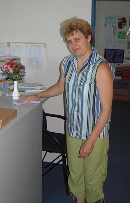 Frau Fischer sorgt seit vielen Jahren für die Sauberkeit in unserem Schulhaus. Am Nachmittag, beinahe unbemerkt, macht sie ihre wichtige Arbeit. Am Morgen können Schüler und Lehrer in sauberen Räumen miteinander lernen. Wir sind sehr dankbar für diese Arbeit.